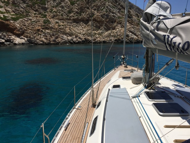 Nel periodo estivo la costa del Peloponneso non è interessata dal Meltemi, quindi crociera a tutta vela su Bluenose con brezze da NW a SE mediamente sui 10/15 nodi.
